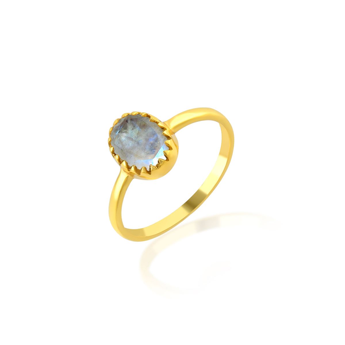 Anillo Plata Dorada 6x8mm ANM0183DOPL10 Piedra Mineral Calcedonia