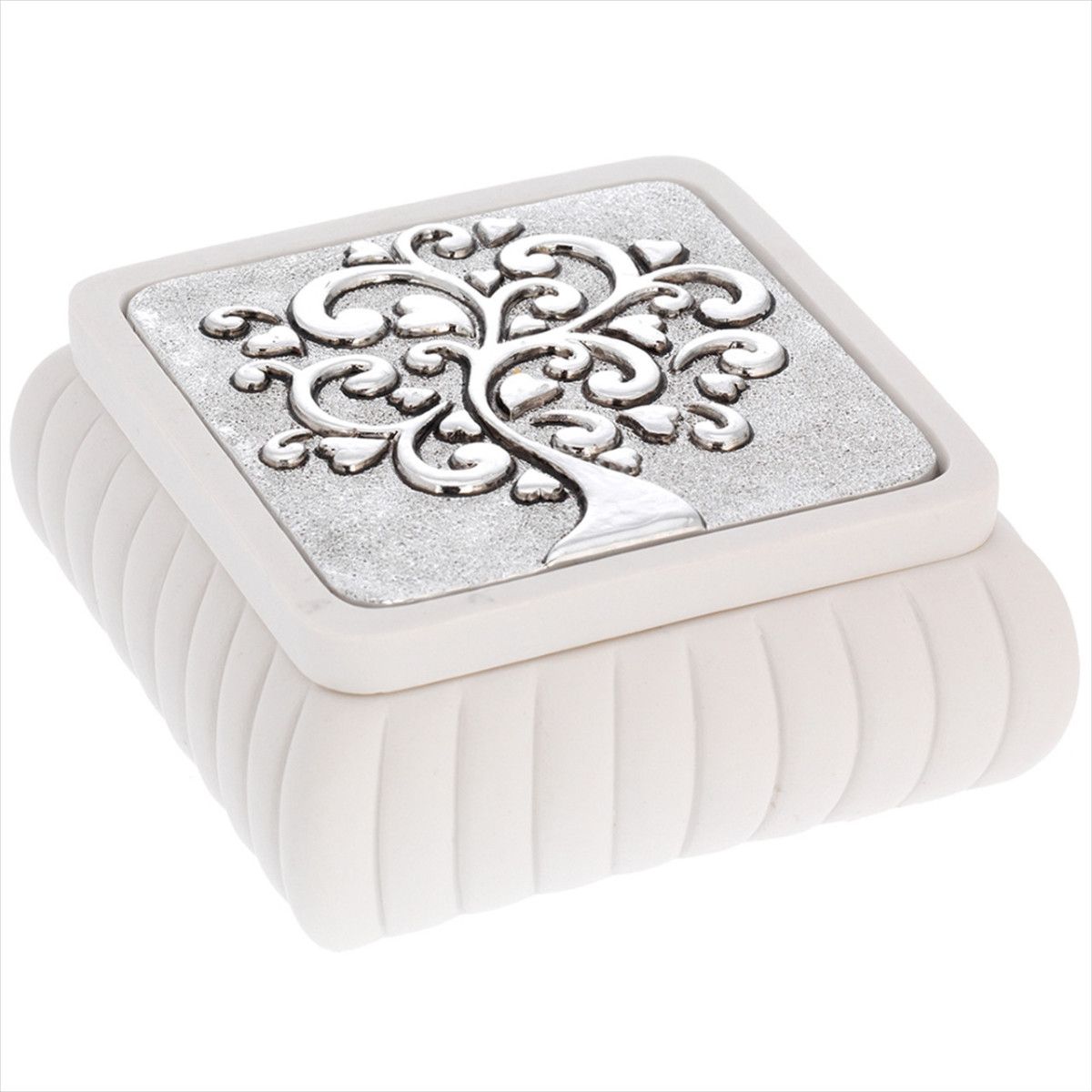 Caja Cuadrada 11x11x4.5cm 2160-01G Tapa Detalle Árbol Corazones