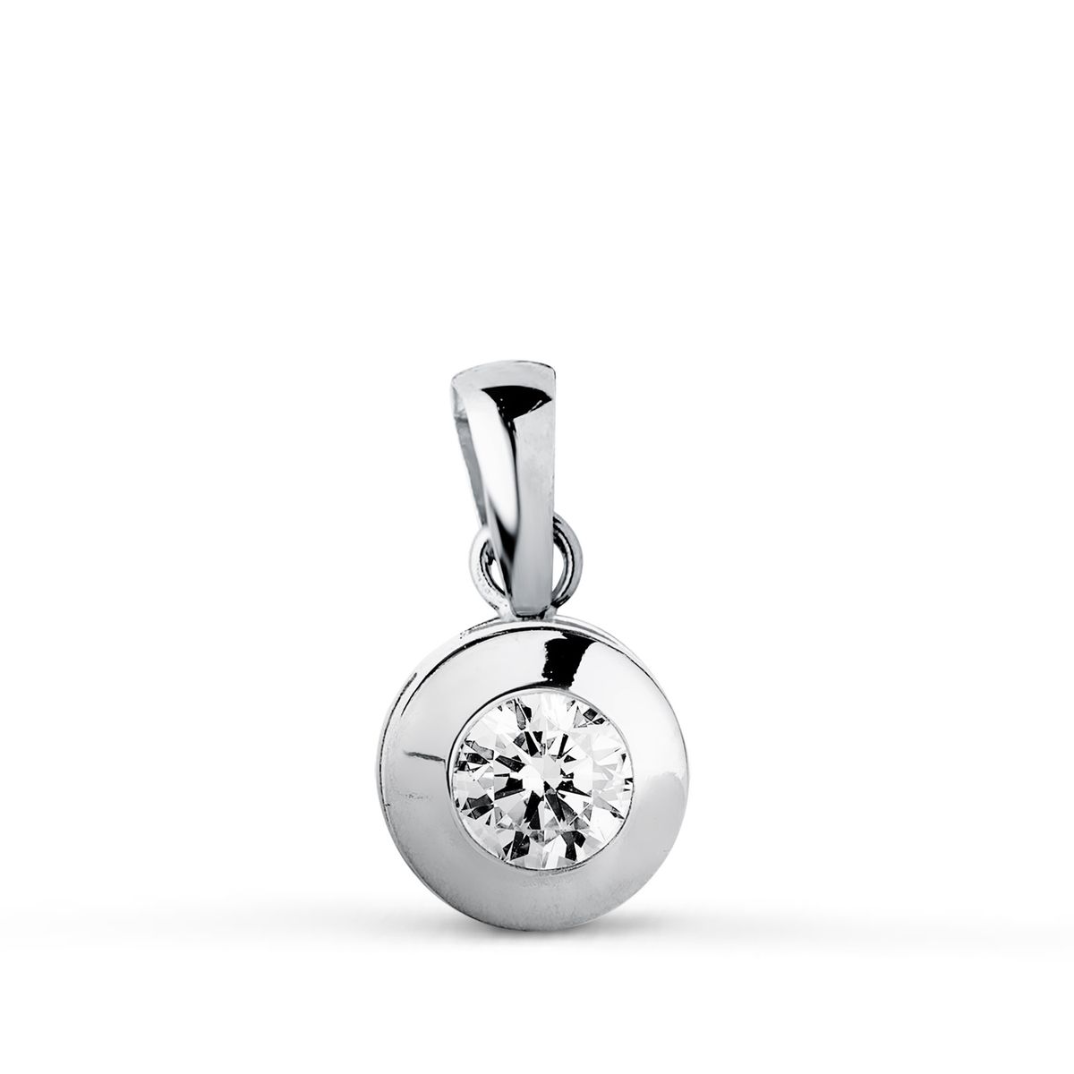 Colgante Oro Blanco 18Kts 7,5mm N5950-8B5 Chatón Galería Circonita. Colgante fabricado en oro blanco 18kts 750/000 (18k). Diseño de chatón galería con circonita. Medida: 7,5mm. Certificado de autenticidad y garantía de calidad en los materiales de fabricación. Ref N5950-8B5
