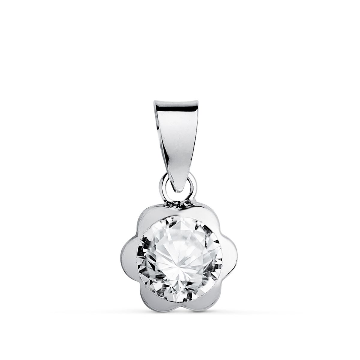 Colgante Oro Blanco 18Kts 8x7mm N5999-6B5 Margarita Circonita. Colgante fabricado en oro blanco 18kts 750/000 (18k). Diseño de margarita con circonita. Medida: 8x7mm. Certificado de autenticidad y garantía de calidad en los materiales de fabricación. Ref N5999-6B5