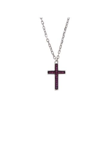 Colgante Plata Mujer PCRZ26/R Cruz Circonitas Rojas