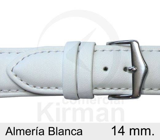 Correa Reloj Piel 14x90/130mm 4020314 Almería Blanca Cierre Hebilla Acero