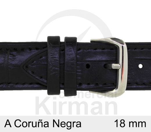 Correa Reloj Piel 18x75/120mm4010118 A Coruńa Negra Cierre Hebilla