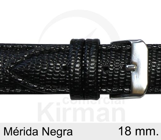 Correa Reloj Piel 18x80/120mm 133037N Mérida Negra Cierre Hebilla Acero