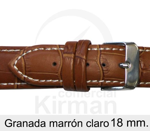 Correa Reloj Piel 18x80/130mm 133119MC Granada Marrón Claro Cierre Hebilla Acero. Correa de reloj fabricada en piel. Diseńo Granada marrón claro cierre de hebilla de acero. Medida 18x80/130mm. Producto de excelente calidad, con garantía contrastada que asegura su fiabilidad y durabilidad. Ref 133119MC
