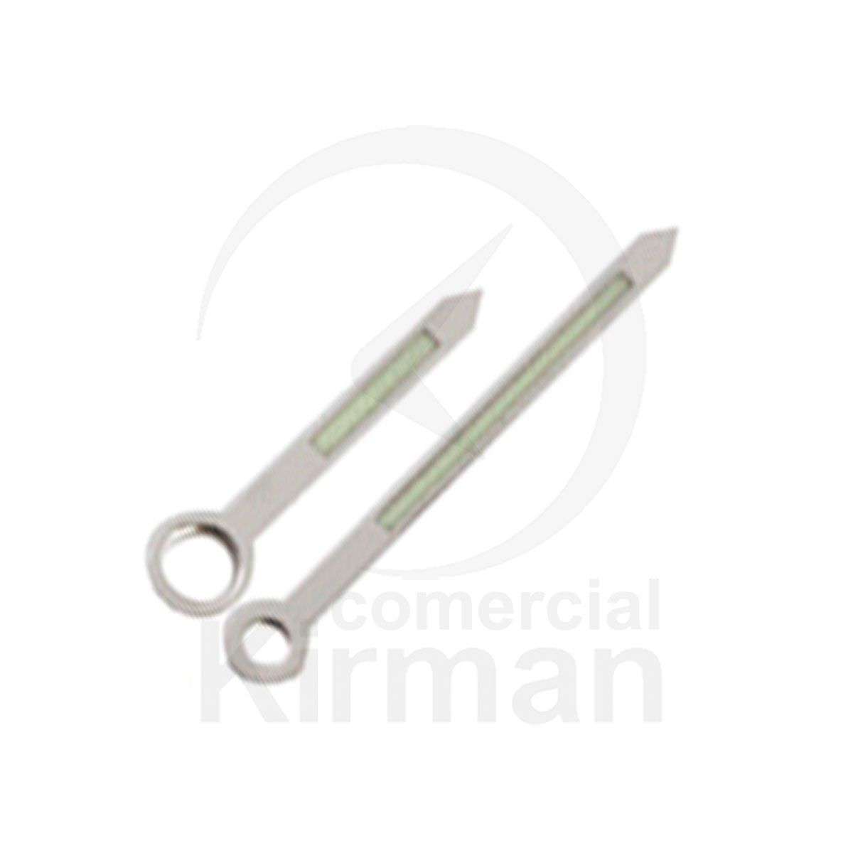 Juego Agujas Reloj Metal Cromado 259167 Luminosas Calibres Diámetro (Horaria 1,35mm - 8mm Largo / Minutero 0,85mm - 12mm Largo)