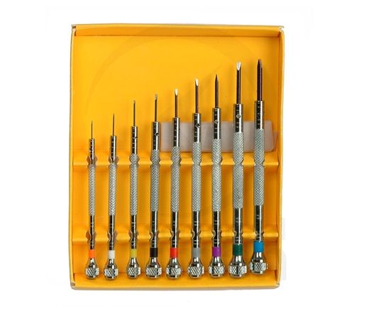 Juego Destornilladores Acero 0.50-2.50mm 45088 (9) Unidades Punta Plana + (9) Unidades De Recambio De Precisión