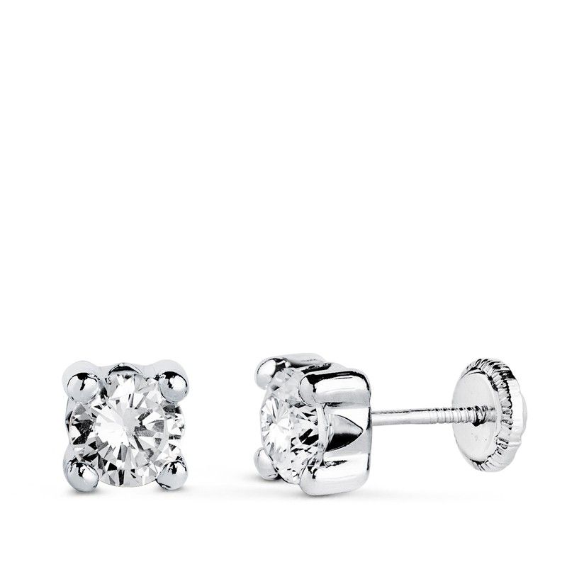 Pendientes 4 Garras Circonitas Oro Blanco 18kts 5mm N5700-5BT