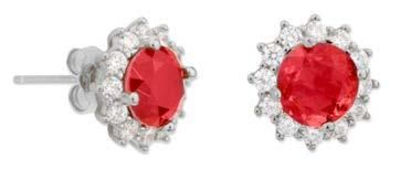 Pendientes Liska Plata MED395A-R Circonita Redonda Roja Bicolor Blanca