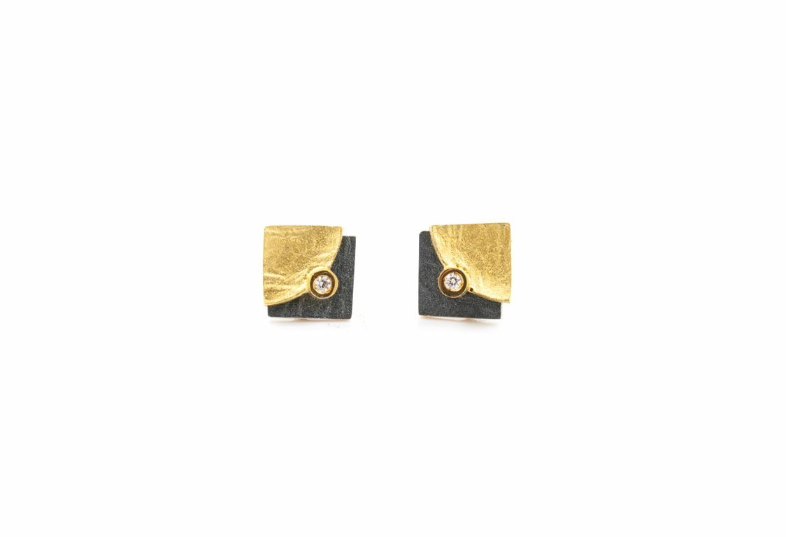Pendientes Oro 18kts Y Plata Arior Doble Fulla Con Diamante 3641364XPP