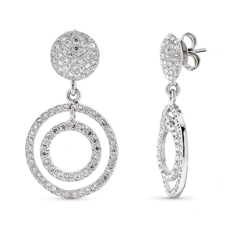 Pendientes Oro Blanco 18kts 15478 Circonitas. Pendientes largos fabricados en oro blanco 18kts. Cierre de presión. Pendientes redondos con circonitas. Certificado de autenticidad y garantía de calidad en los materiales de fabricación. Ref 15478
