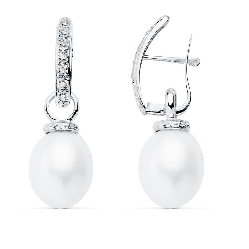 Pendientes Oro Blanco 18kts 30x10mm 18602 Perla. Pendientes fabricados en oro 18kts con perla. Medidas 30x10mm. Certificado de autenticidad y garantía de calidad en los materiales de fabricación. Ref 18602