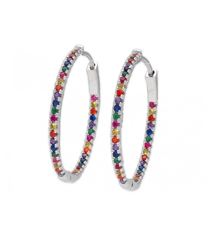 Pendientes Plata 28mm Liska MED143A 3 Aro Circonitas Multicolor