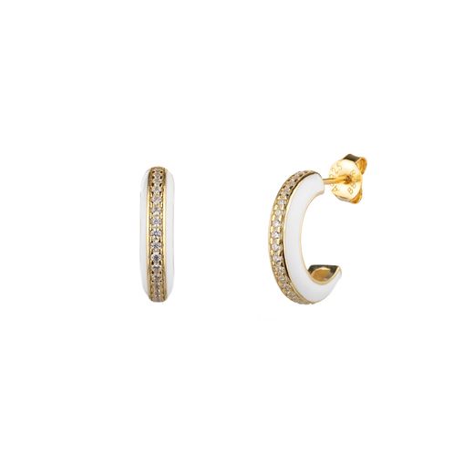 Pendientes Plata Dorada 16mm PEZ1562DOEW Medio Aro Circonitas Enamel Blanco