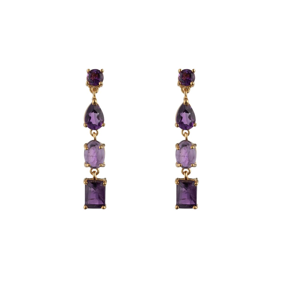 Pendientes Plata Dorada 35mm PEM0311DOAM Colgante Minerales Amatista