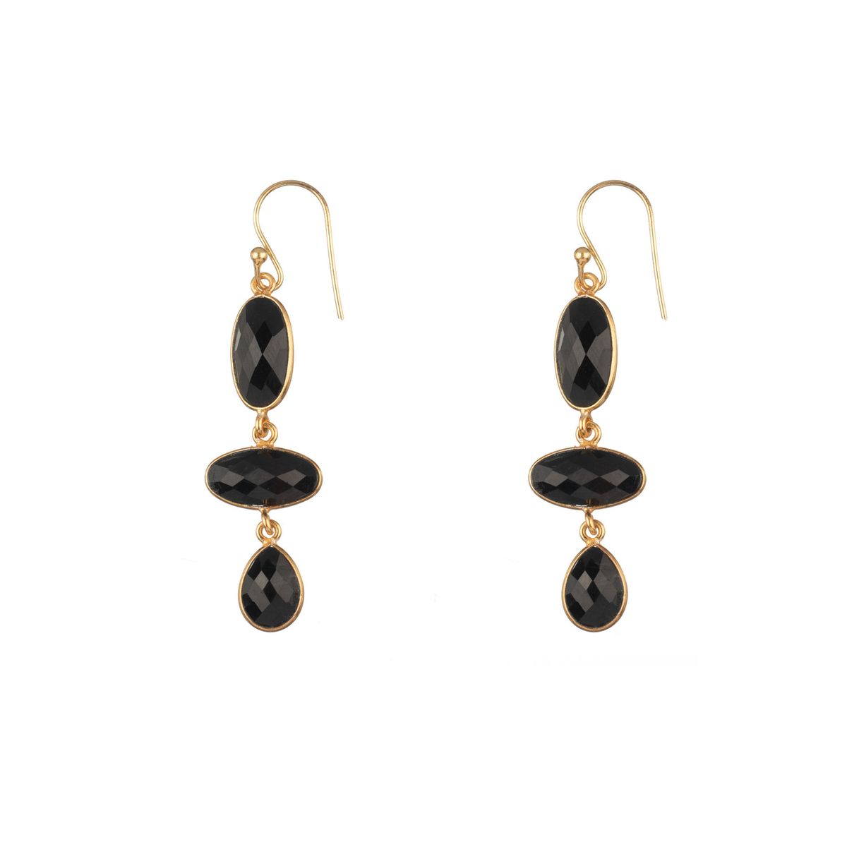 Pendientes Plata Dorada 60mm PEM0341DOOX Mineral Ónix Negra