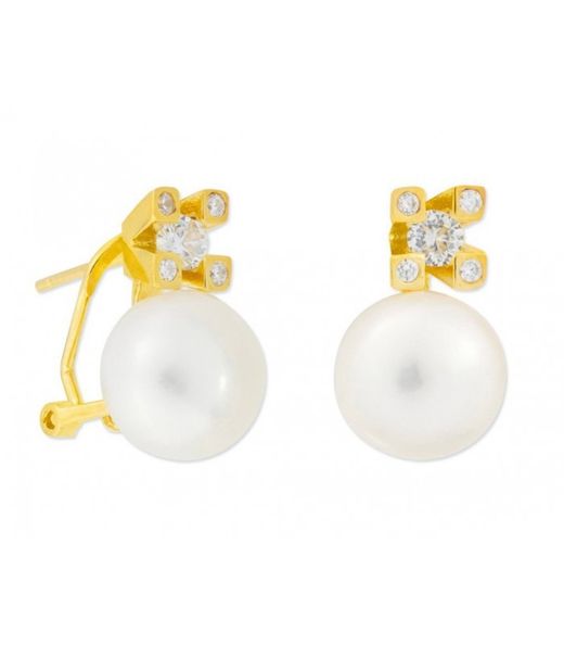 Pendientes Plata Dorada Liska 100mm MED272A-D Perla Circonitas. Pendientes fabricados en plata dorada de ley 925 con baño de oro 18kts. Diseño de perla con circonitas. Colección MEDITERRANEA. Medidas 100mm. Certificado de autenticidad y garantía de calidad en los materiales de fabricación. Ref MED272A-D