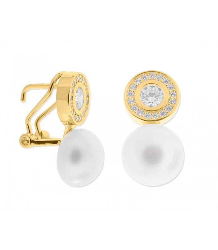 Pendientes Plata Dorada Liska 11mm MED274A-D Perla Circonitas
