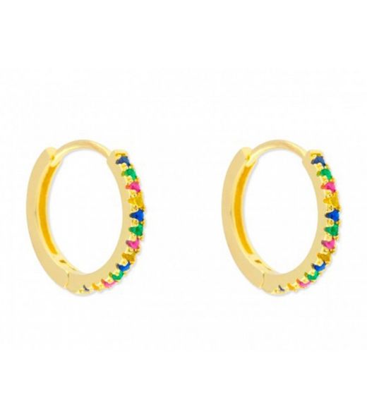 Pendientes Plata Dorada Liska 14mm MED145A-14D Aro Liso Circonitas. Pendientes fabricados en plata dorada de ley 925 con baño de oro 18kts. Diseño de aro liso circonitas multicolor. Colección MEDITERRANEA. Medidas 14mm. Certificado de autenticidad y garantía de calidad en los materiales de fabricación. Ref MED145A-14D