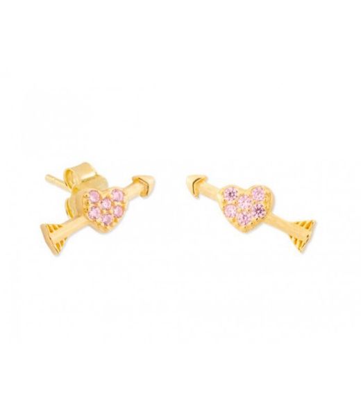 Pendientes Plata Dorada Liska MED310A-D Corazón Flechado Circonitas. Pendientes fabricados en plata dorada de ley 925 con baño de oro 18kts. Diseño de corazón flechado con circonitas rosadas. Colección MEDITERRANEA. Certificado de autenticidad y garantía de calidad en los materiales de fabricación. Ref MED310A-D