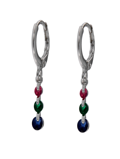 Pendientes Plata Mujer PPAC55 Aro Colgante Circonitas Multicolor. Pendientes fabricados en plata de ley 925. Diseño de aro con colgante de circonitas multicolor. Cierre click. Certificado de autenticidad y garantía de calidad en los materiales de fabricación. Ref PPAC55