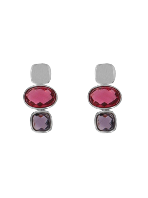 Pendientes Plata Mujer PSET166/1 Colgante Circonitas Rojas Bicolor Moradas