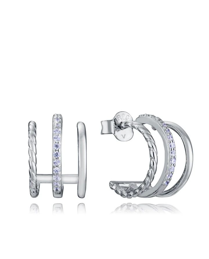 Pendientes Plata Viceroy 1,1cm 9155E000-30 Medio Aro Triple Circonitas