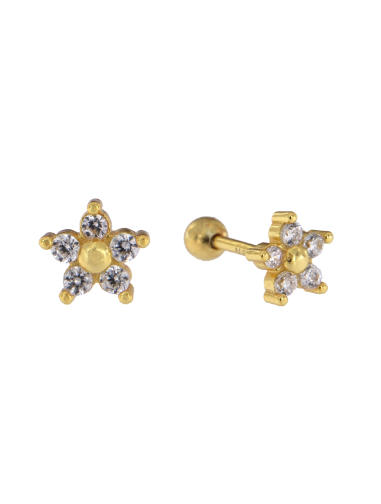 Piercing Plata Dorada Mujer PTR 22/C Flor Circonitas. Piercing fabricado en plata dorada de ley 925. Diseño de flor con circonitas. Cierre rosca. Certificado de autenticidad y garantía de calidad en los materiales de fabricación. Ref PTR 22/C
