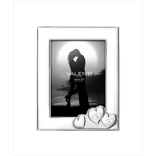 Portafotos Aniversario 13x18cm 52127/4L Alianzas Corazones 25 Años. Portafotos conmemorativo de 25 Años de bodas con corazones. Recuerdos de aniversario de bodas. Medidas 13x18cm. Ref 52127/4L