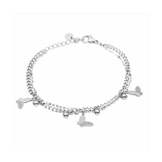 Pulsera Acero B22005 Doble Mariposas. Pulsera fabricado en Acero inoxidable. Cierre mosquetón. Diseńo Doble Mariposas. Certificado de autenticidad y garantía de calidad en los materiales de fabricación. Ref B22005