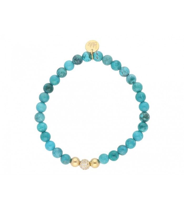 Pulsera Acero Dorado 6mm Liska Mujer SHA050-1D Piedras Turquesa