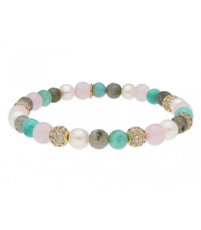 Pulsera Acero Dorado Liska Mujer SHA086 Piedras Naturales Multicolor