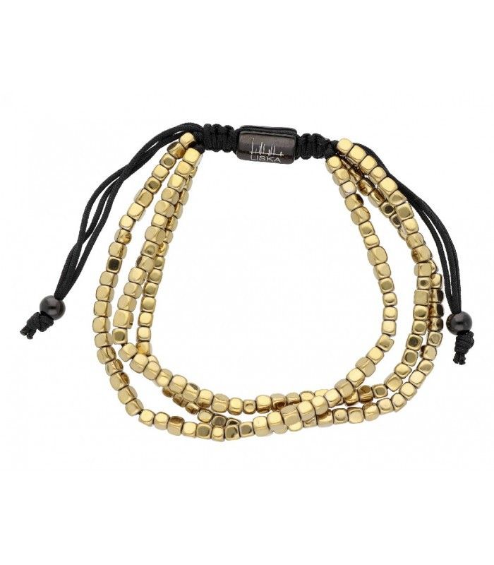 Pulsera Acero Dorado Liska Mujer SHA133-G Triple. Pulsera fabricada en acero dorado y cuerdas negras. Diseño de triple y ajustable. Colección SIDDHARTHA. Certificado de autenticidad y garantía de calidad en los materiales de fabricación. Ref SHA133-G