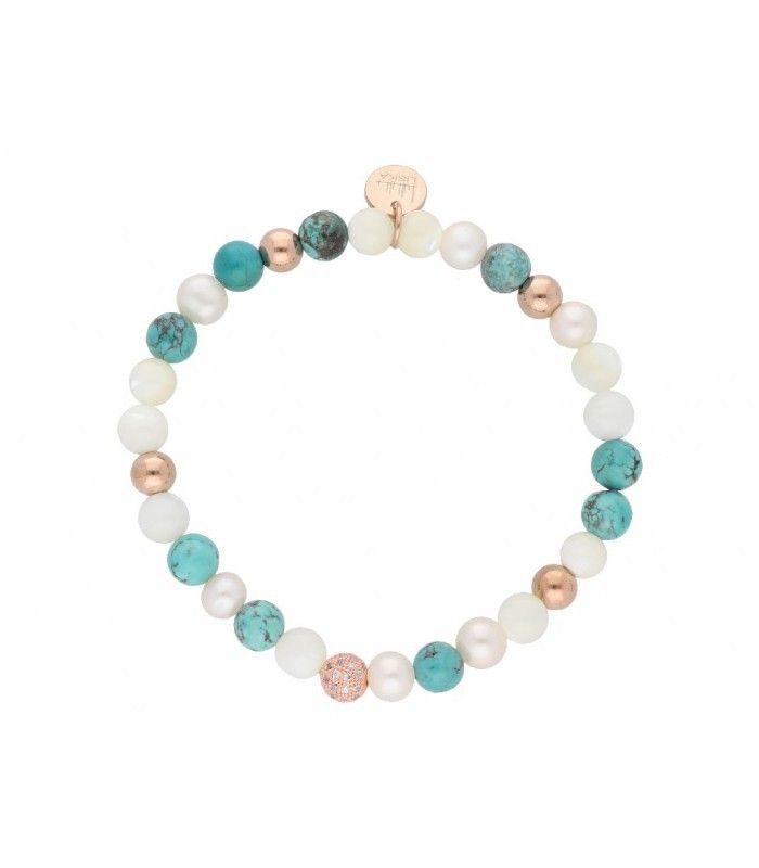 Pulsera Acero Dorado Liska Mujer SHA150 Piedras Naturales. Pulsera fabricada en acero rosado y piedras natutales. Diseño de piedras naturales. Colección SIDDHARTHA. Certificado de autenticidad y garantía de calidad en los materiales de fabricación. Ref SHA150