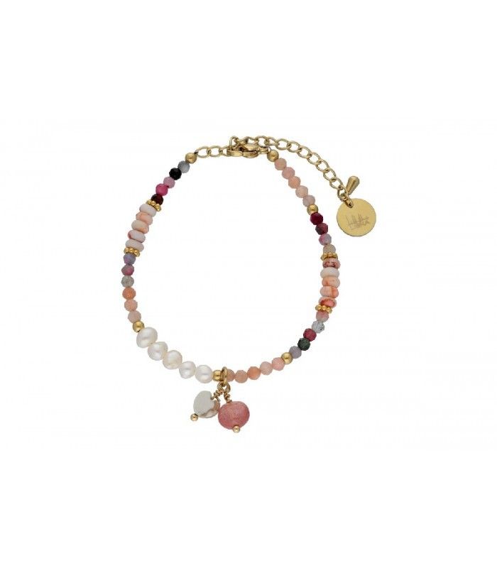 Pulsera Acero Dorado Liska Mujer SHA176 Piedras Naturales Rosadas