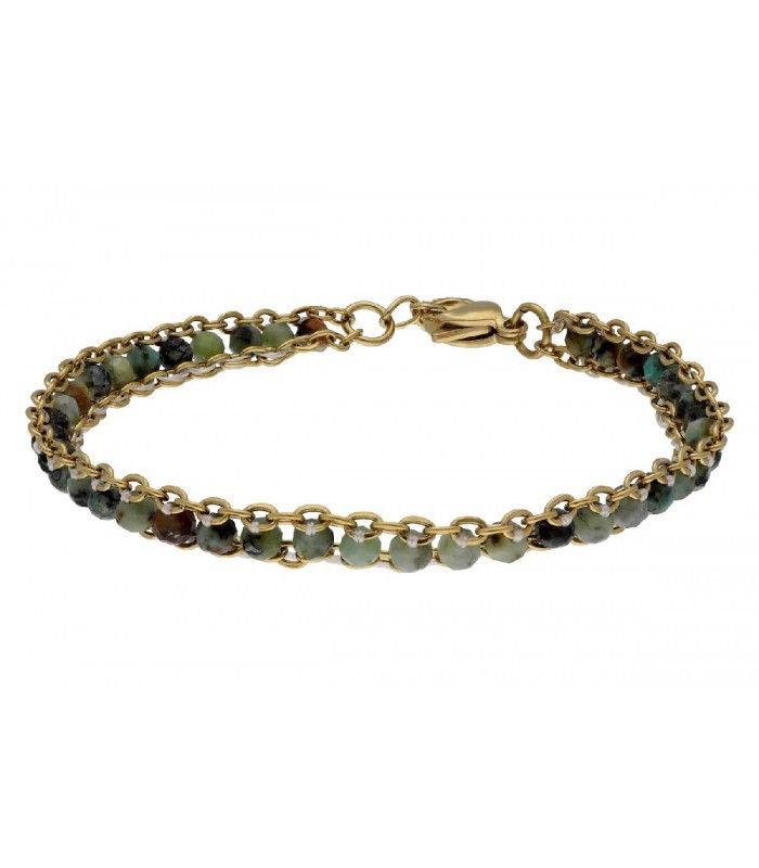 Pulsera Acero Dorado Liska Mujer SHA183 Piedras Naturales Verdes