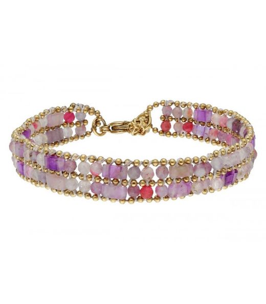 Pulsera Acero Dorado Liska Mujer SHA186 Piedras Naturales Rosadas