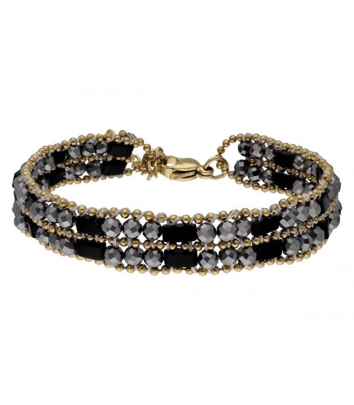 Pulsera Acero Dorado Liska Mujer SHA191 Piedras Naturales Negras