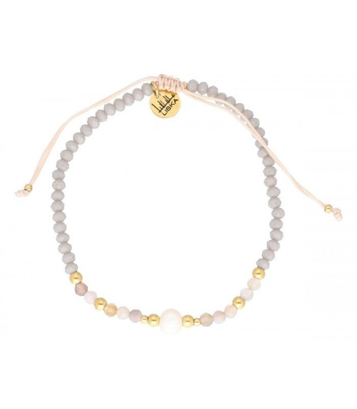 Pulsera Acero Dorado Liska Mujer SHA203 Piedras Naturales Perla