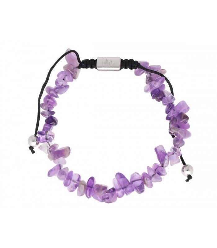 Pulsera Acero Liska Mujer SHA234 Amatista. Pulsera fabricada en acero y cuerda con piedras naturales. Diseño de piedras de amatista. Colección SIDDHARTHA. Certificado de autenticidad y garantía de calidad en los materiales de fabricación. Ref SHA234