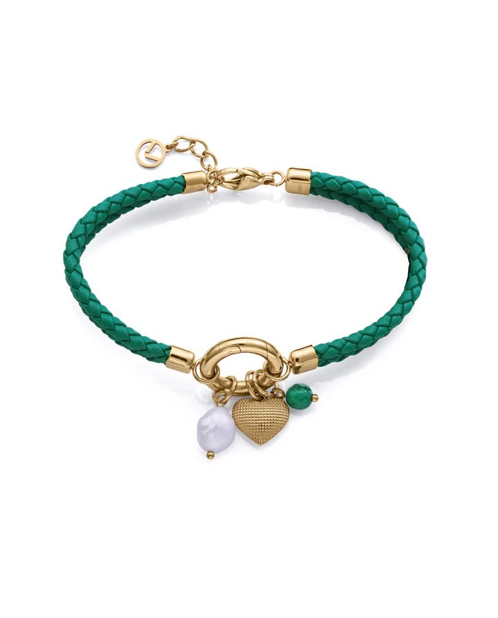 Pulsera Acero-Piel Viceroy 14285P01016 Piel Verde Trenzada Corazón Circonitas