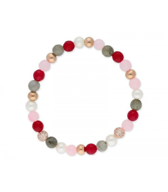Pulsera Acero Rosa Liska Mujer SHA013 Piedras Naturales