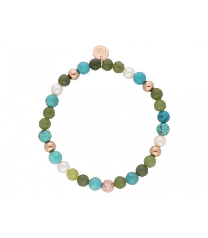 Pulsera Acero Rosa Liska Mujer SHA151 Piedras Naturales Verdes Azules. Pulsera fabricada en acero rosado y piedras natutales. Diseño de piedras naturales azules y verdes. Colección SIDDHARTHA. Certificado de autenticidad y garantía de calidad en los materiales de fabricación. Ref SHA151