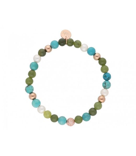 Pulsera Acero Rosa Liska Mujer SHA151 Piedras Naturales Verdes Azules