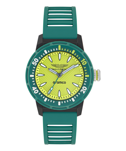 Reloj Aston Martin Hombre MTFK1F501 Sport Verde Analógico. Caja de plástico de 40mm de diámetro. Bisel verde. Correa de silicón verde. Cierre hebilla. Esfera verde. Cristal mineral. Movimiento quartz. Sumergible 100m. 3 años de garantía. Ref MTFK1F501