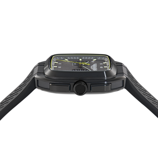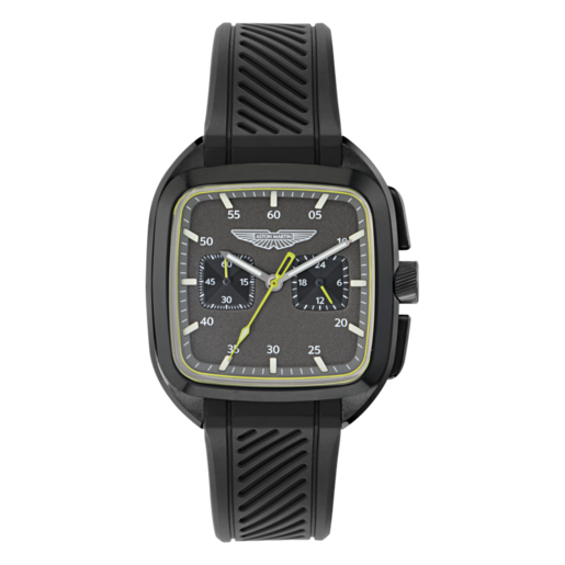 Reloj Aston Martin Hombre MTIU1S605 Sport Negro Analógico. Caja de acero reciclado negro de 40,5mm de diámetro. Bisel negro. Correa de silicón negro. Cierre hebilla. Esfera gris. Multifunción, cronógrafo. Cristal mineral. Movimiento quartz. Sumergible 100m. 3 años de garantía. Ref MTIU1S605