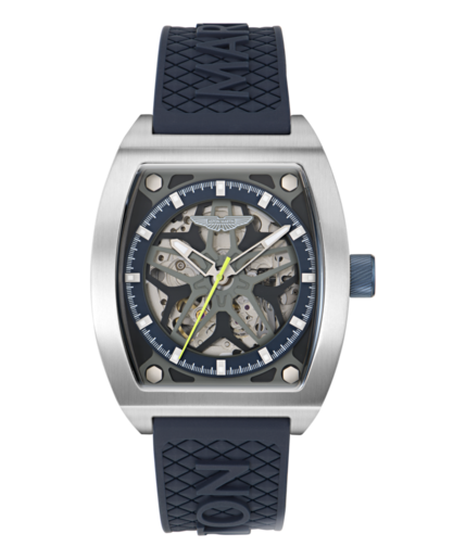 Reloj Aston Martin Hombre MTRT1F503 Sport Azul Titanio Automático. Caja de titanio de 41mm de diámetro. Bisel plateado. Correa de silicón azul. Cierre hebilla. Esfera esqueletada inspirada en las llantas del DBS GT Zagato. Cristal mineral con recubrimiento zafiro. Movimiento automático. Sumergible 100m. 3 años de garantía. Ref MTRT1F503