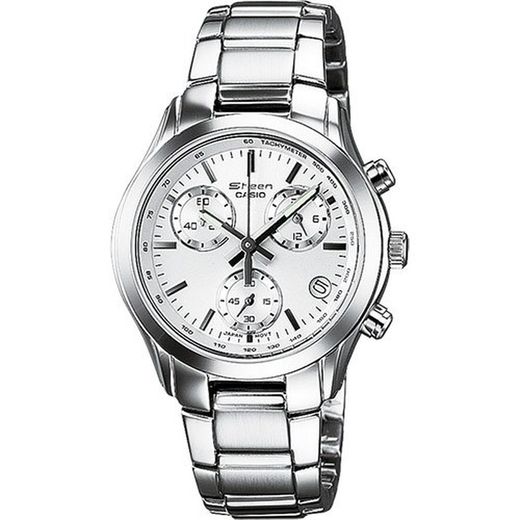 Reloj Casio Sheen Mujer SHN-5000BP-7AVEF Acero. Caja de acero inoxidable y brazalete de acero inox. Calendario. Cronómetro. Pantalla de neón. Esfera blanca. Fabricado con Swarovski Cristals. Cristal mineral. Quartz. Sumergible 50m. 2 años de garantía. Ref. SHN-5000BP-7AVEF