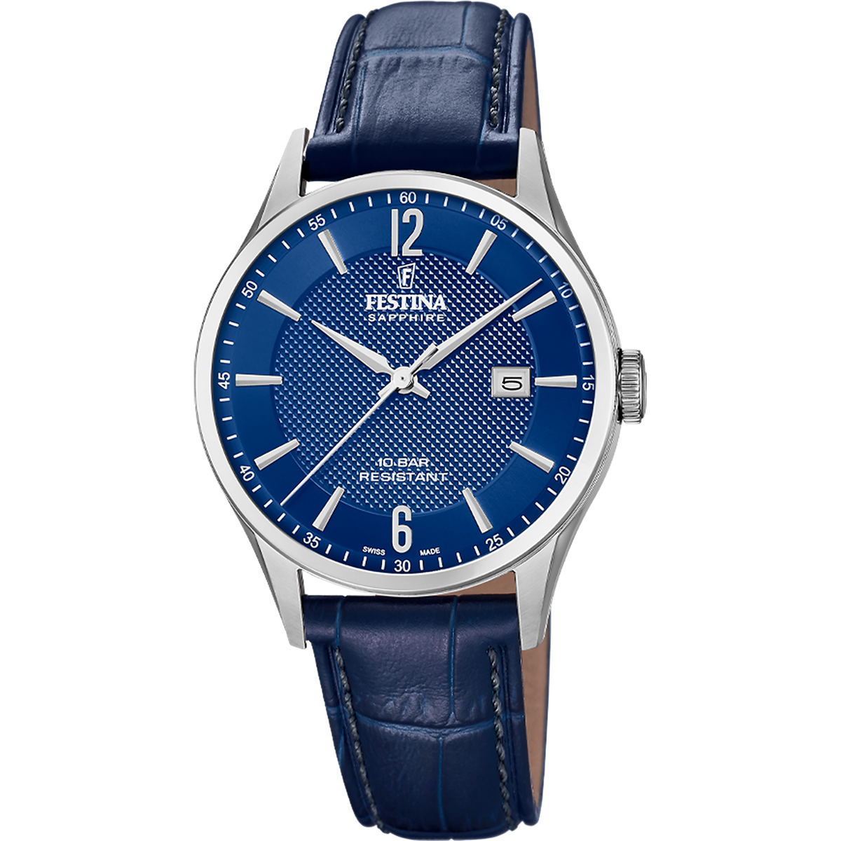 Reloj Festina Hombre F20007/6 Acero Correa Piel Azul Analógico. Caja de acero inoxidable de 40mm de diámetro. Bisel plateado. Correa de piel azul. Cierre de hebilla de acero inoxidable. Esfera azul. Multifunción calendario, tres agujas. Cristal zafiro. Movimiento quartz. Swiss Made. Sumergible 100m. 3 años de garantía. Peso 60g. Ref F20007/6