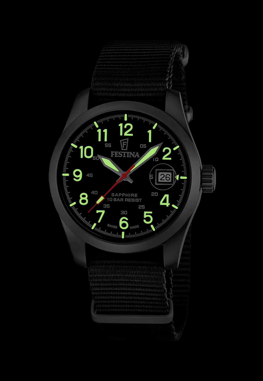 Reloj Festina Hombre F20082/X3 Acero Negro. Caja de acero negra de 39mm de diámetro. Bisel negro. Correa de nylon negra. Cierre de hebilla de acero inoxidable. Esfera negra. Lumibrite en manecillas. Multifunción calendario, tres agujas. Cristal zafiro. Movimiento quartz. Swiss Made. Sumergible 100m. 3 años de garantía. Ref F20082/X3